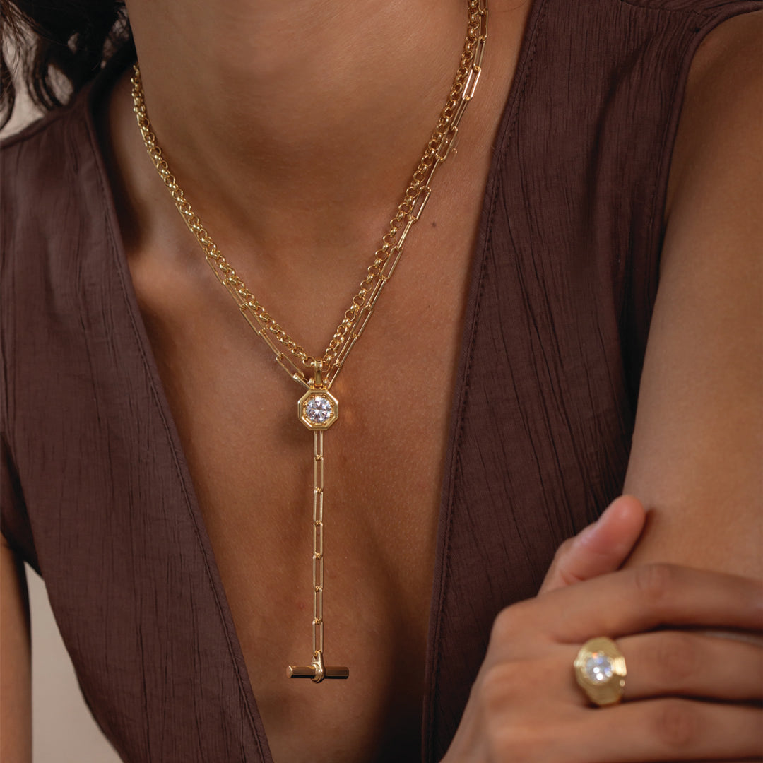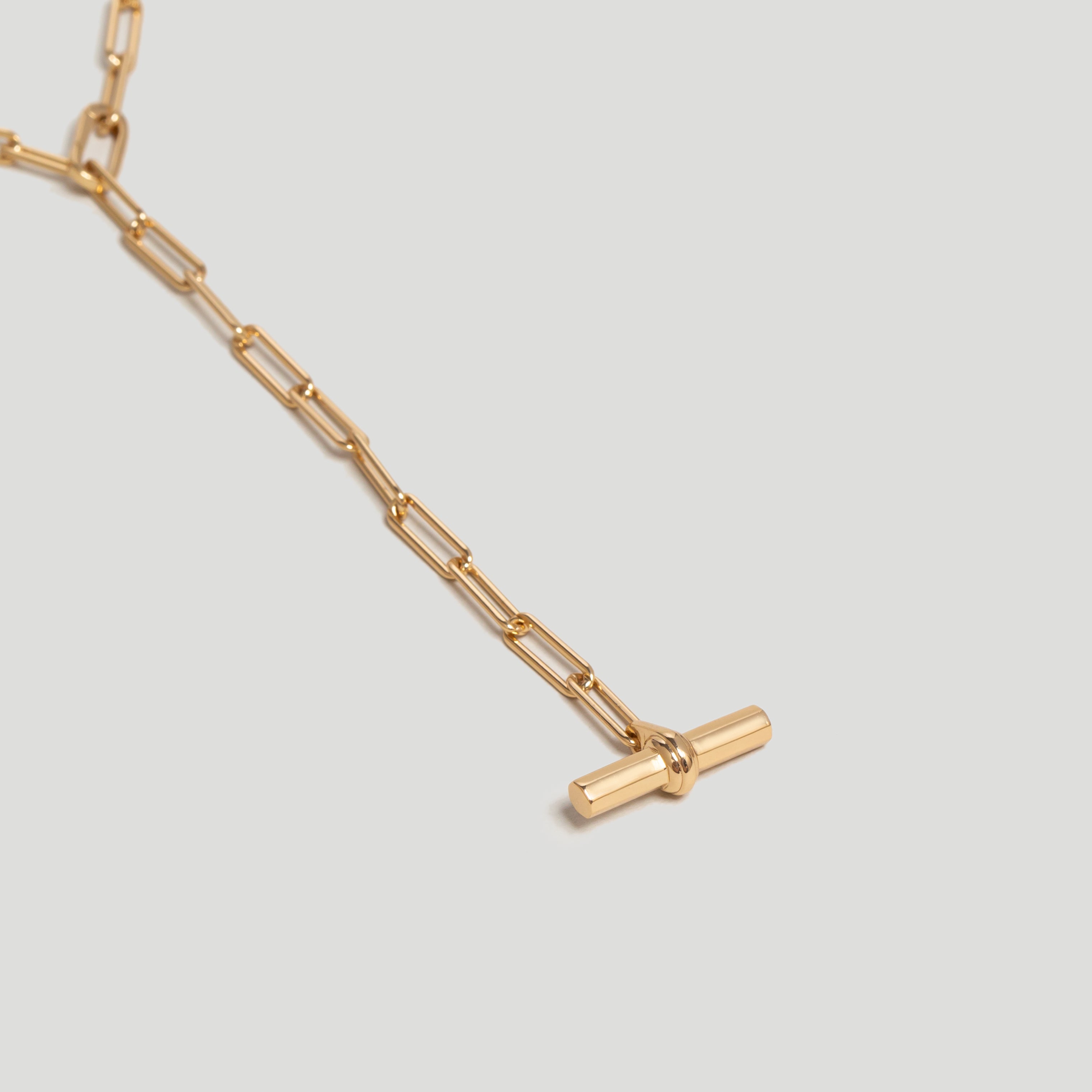 Adjustable Gold Chain T Bar Necklace in 18k Gold Plated Sterling Silver