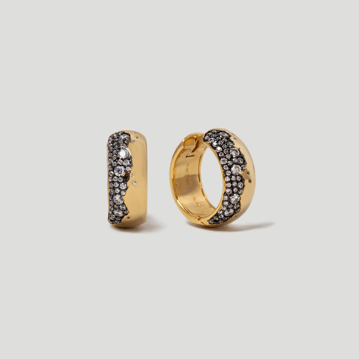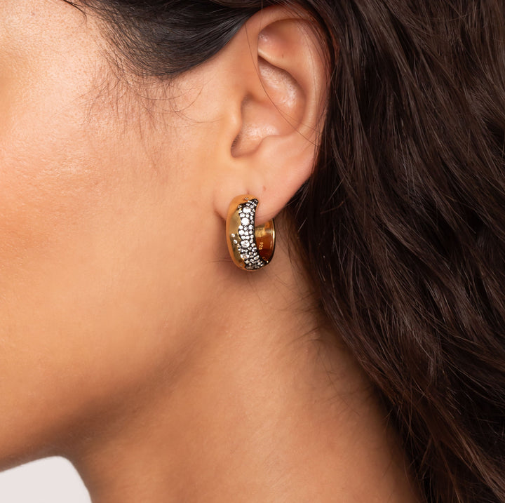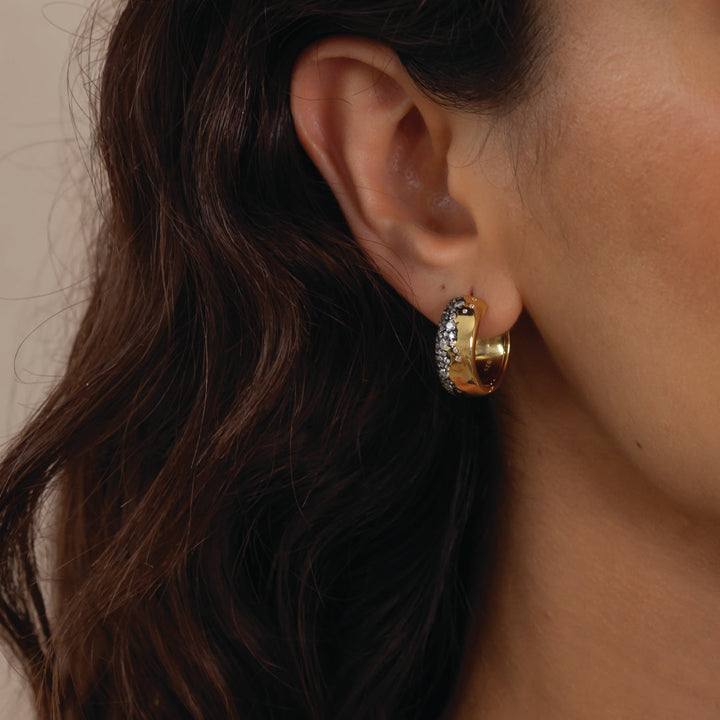 These gold hoop earrings have unique pave stone details inspired by naturally formed geode crystals.