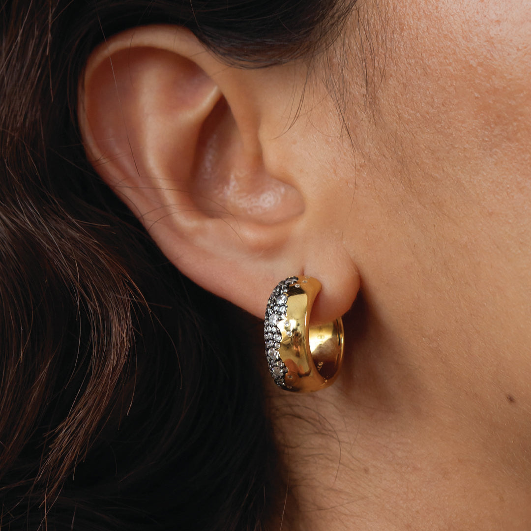 Chunky Gold Hoops With Mixed Pave Cz Crystal Edge In 18K Gold Plated Vermeil