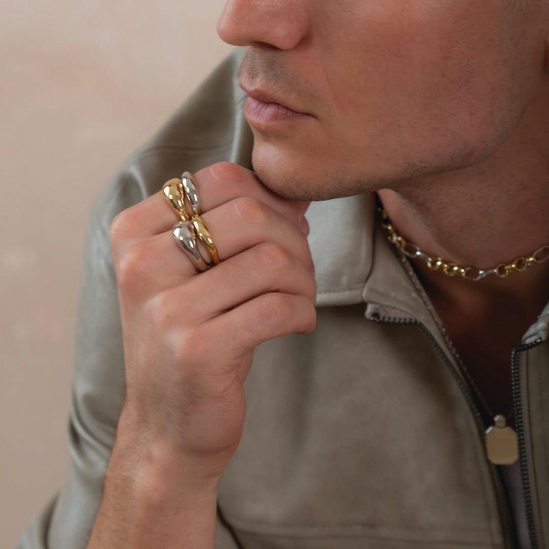 Our chunky everyday ring has a fluid, tapered design & looks great on its own or stacked together with our Wave Ring