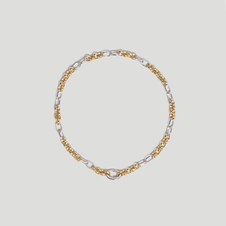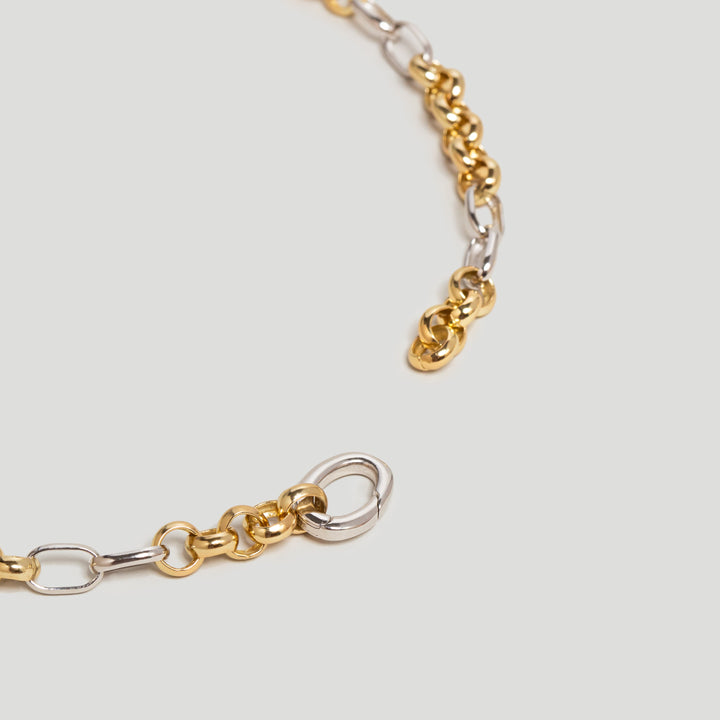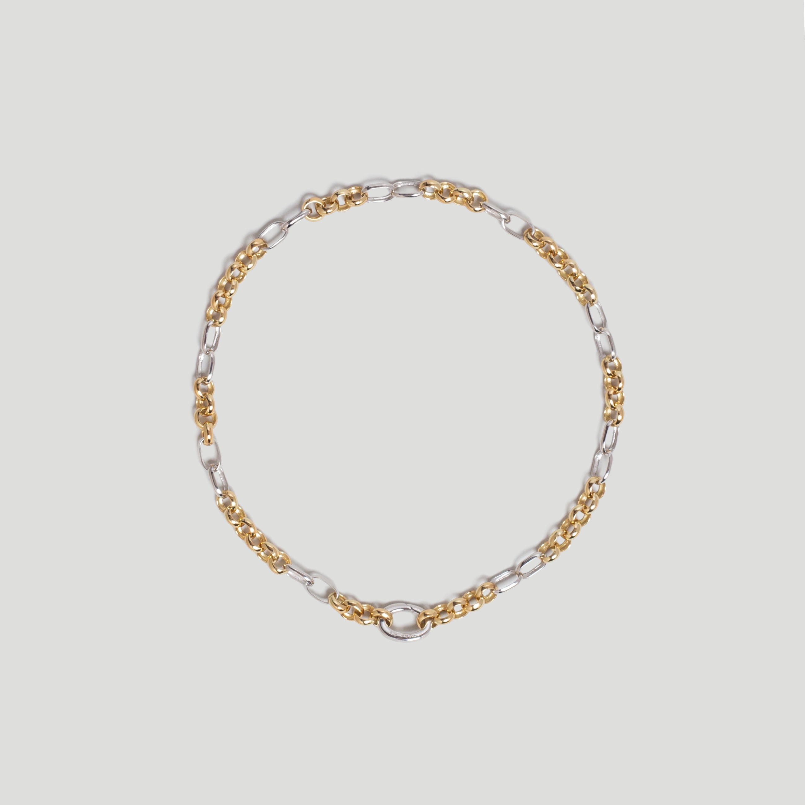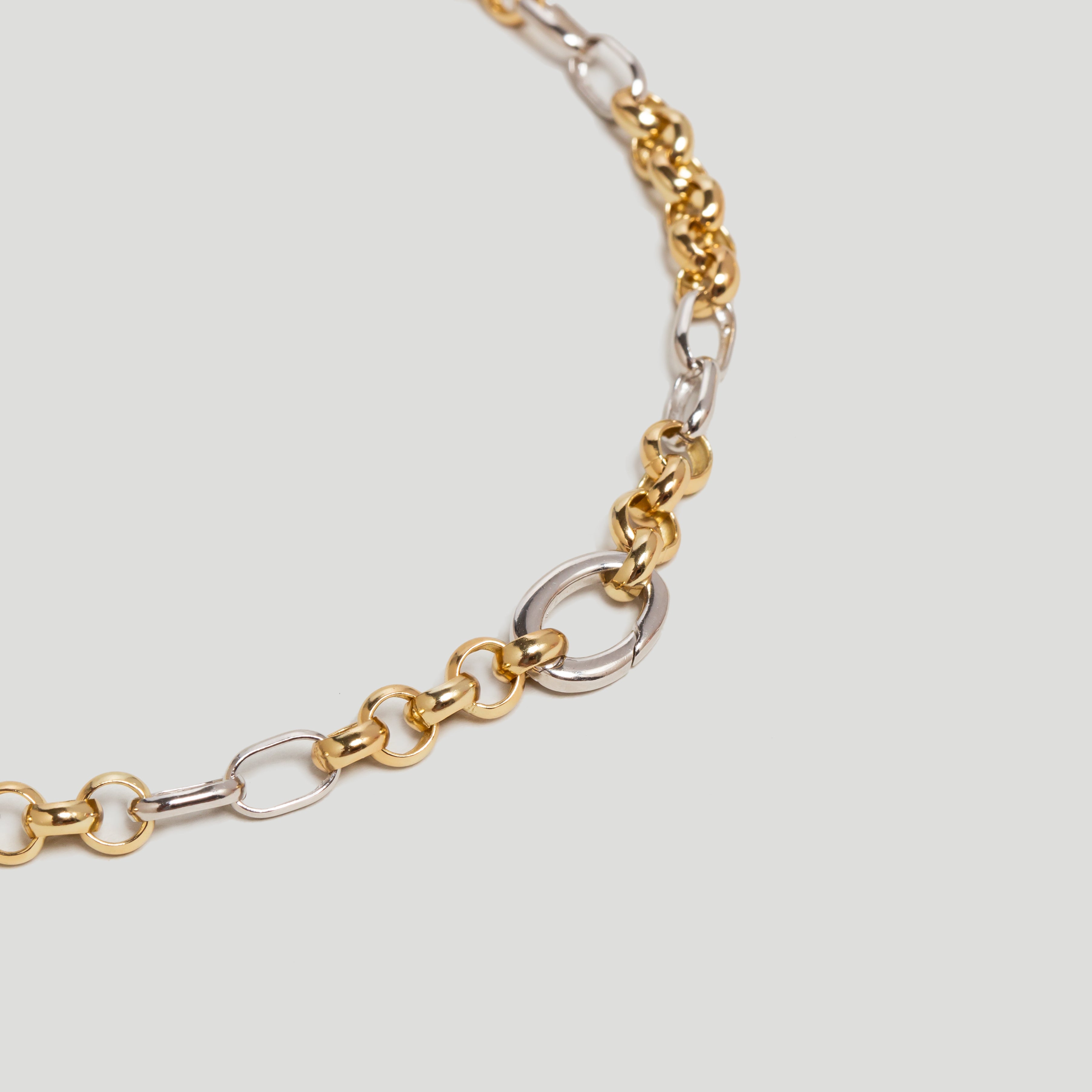 Our vintage inspired mixed plate chain combines classic round & oval rolo links. The mix of 18 carat gold & rhodium plating gives this silver chain a modern twist & makes it the perfect pairing to layer with other necklaces.