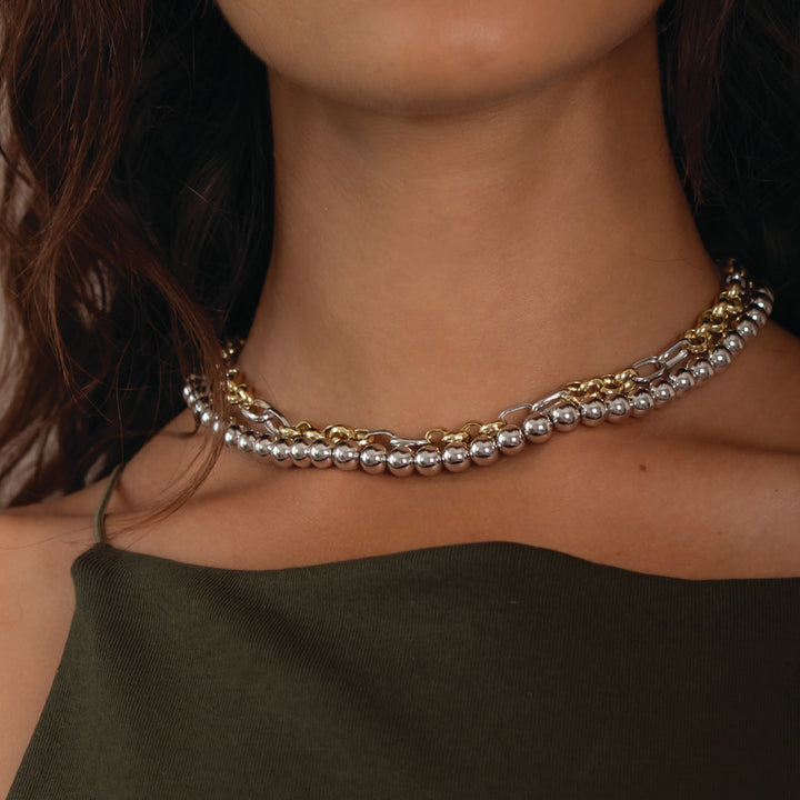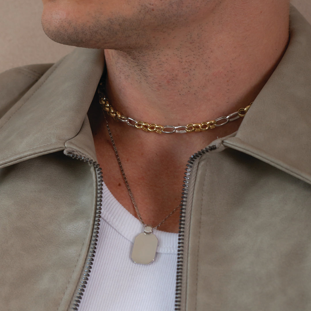 You can also style with our matching Mixed Metal Rolo Chain Bracelet.