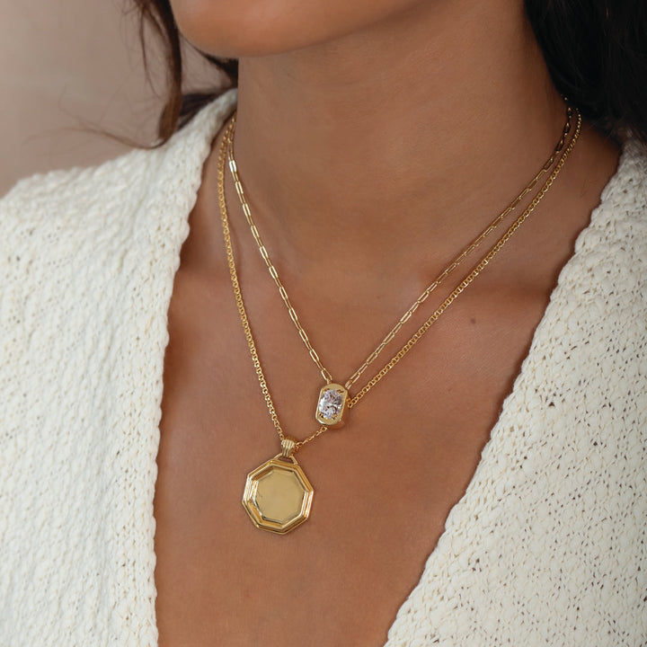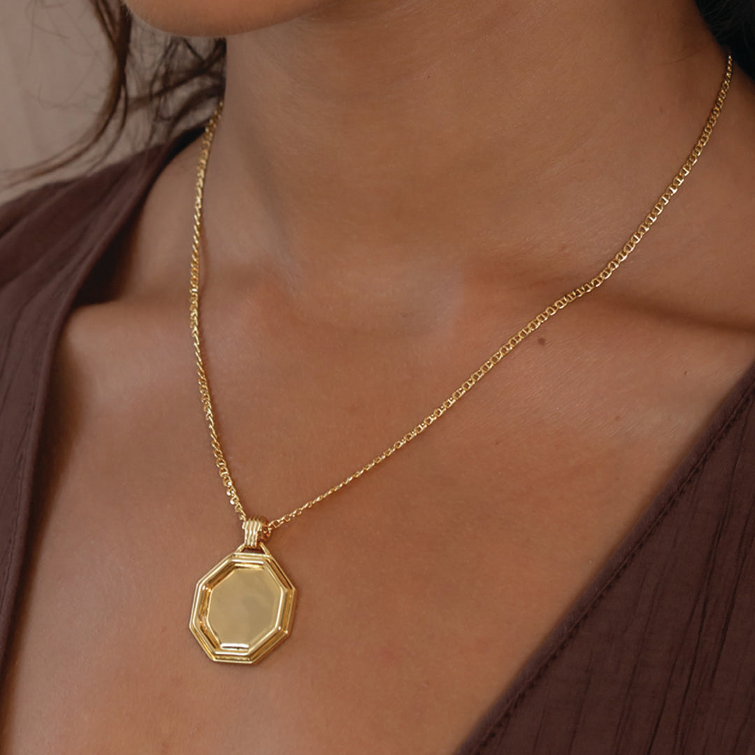 Octagon Gold Coin Necklace in 18k Gold Plated Sterling Silver