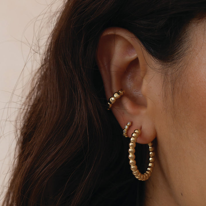 Why not create your own ear stack & style with our crystal ball gold hoops and ear cuff?
