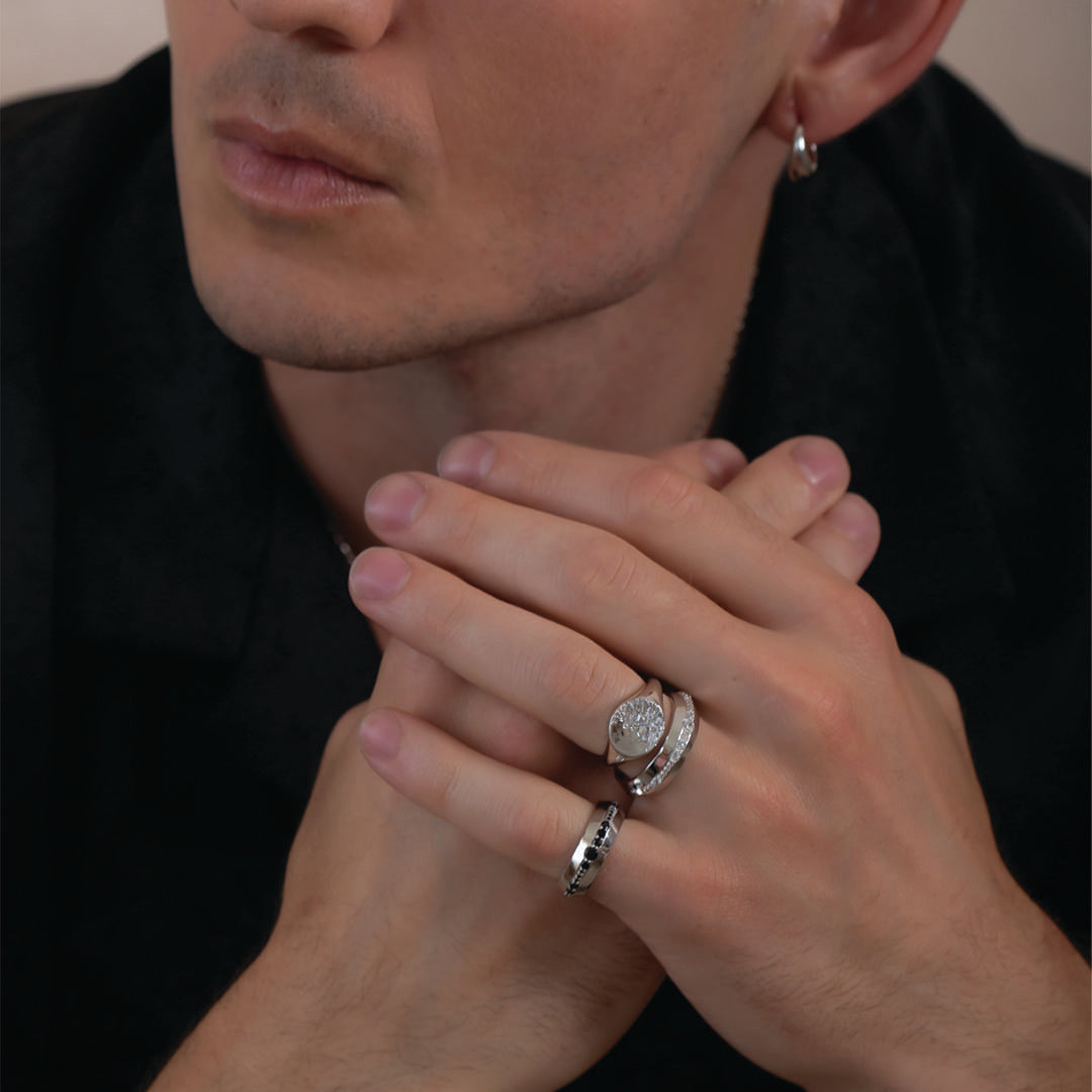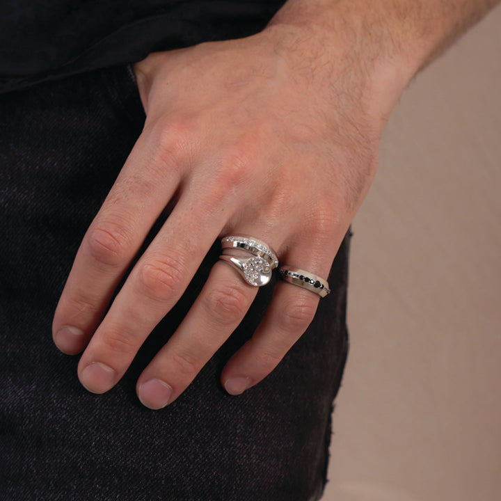 Style on its own or stack together with the matching gold ring or Black Spinel gold ring for your own unique statement ring stack. This sterling silver ring is the perfect stackable ring to add to your jewellery collection.
