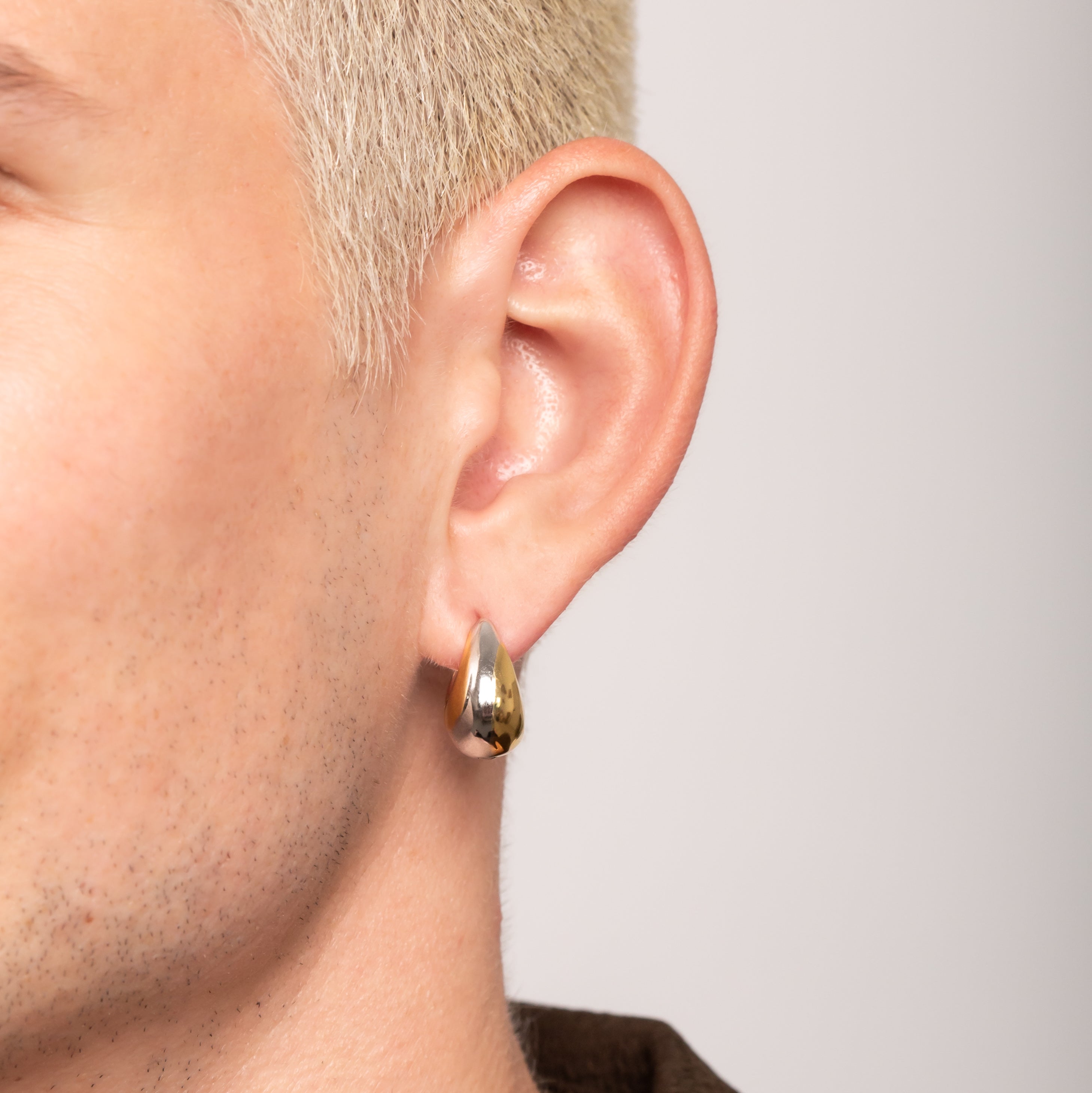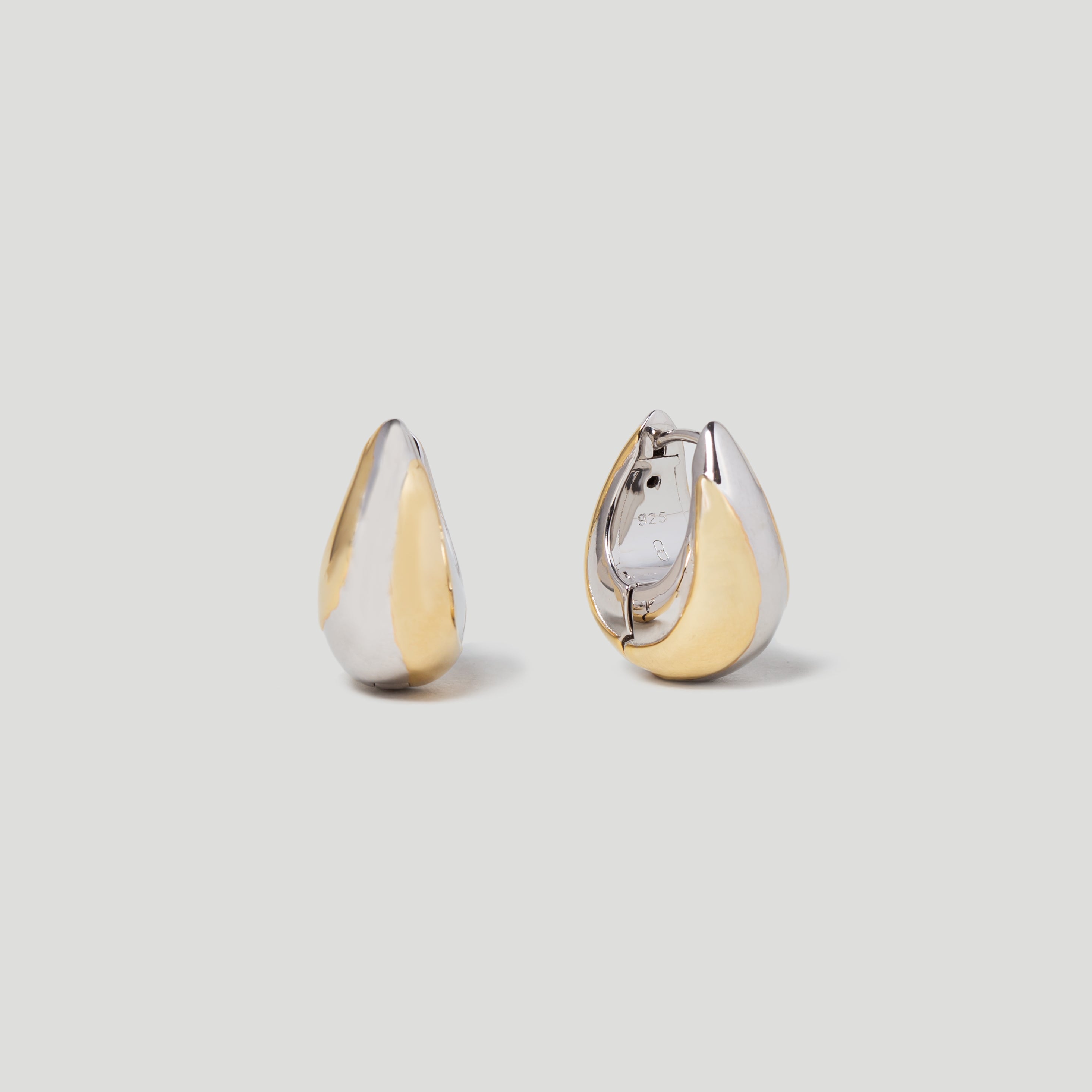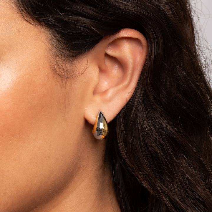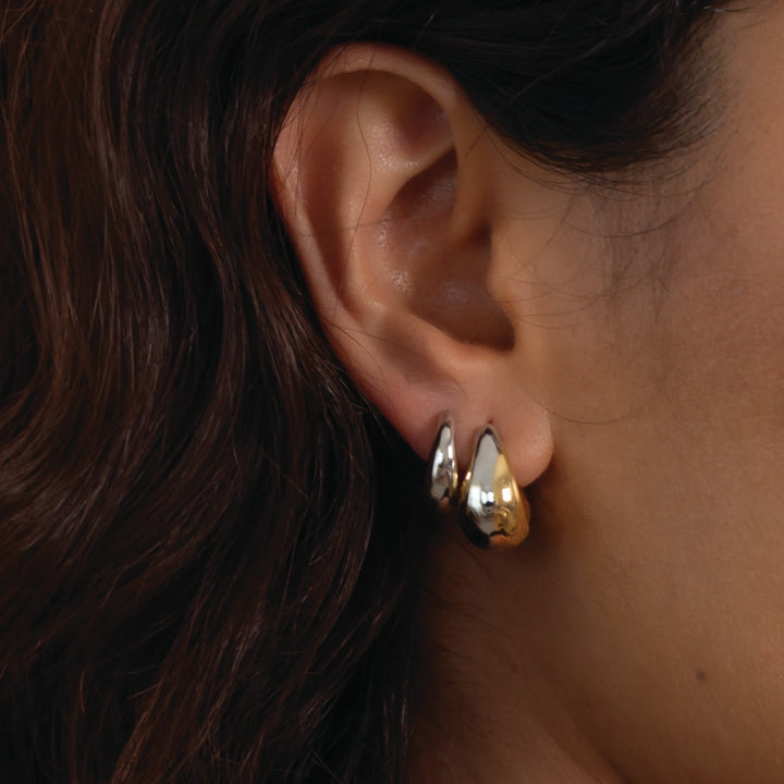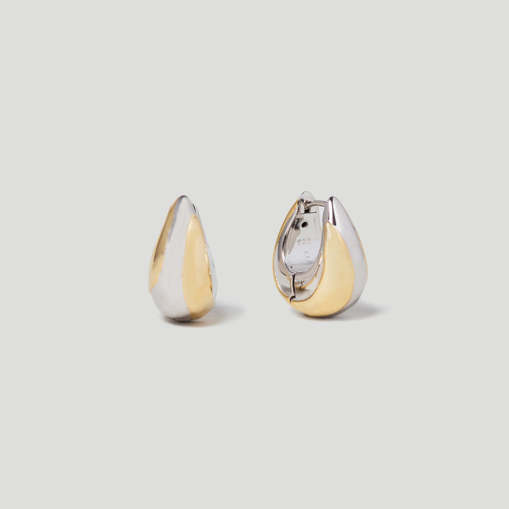 Teardrop Hoop Earrings in 18k Gold & Rhodium plated Sterling Silver