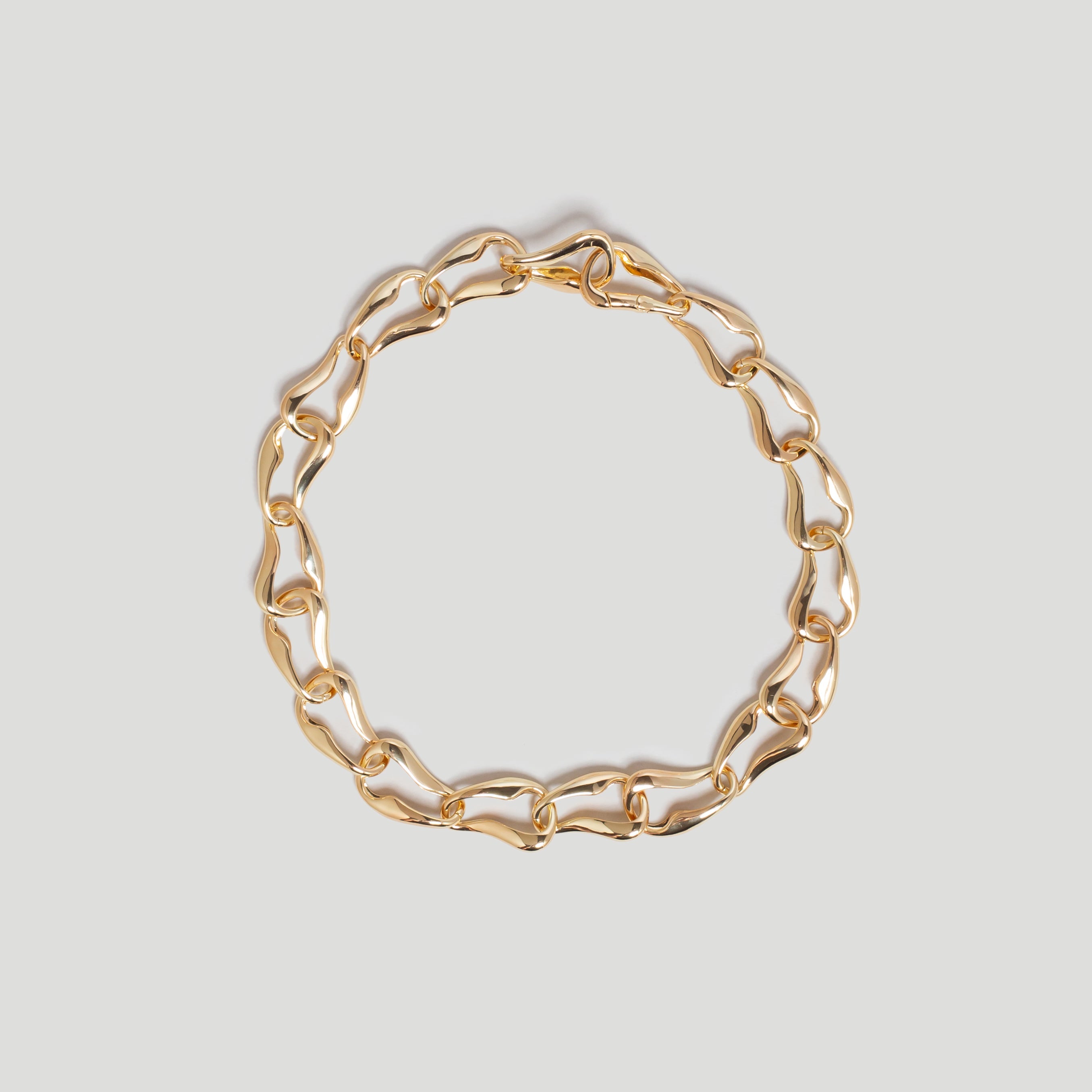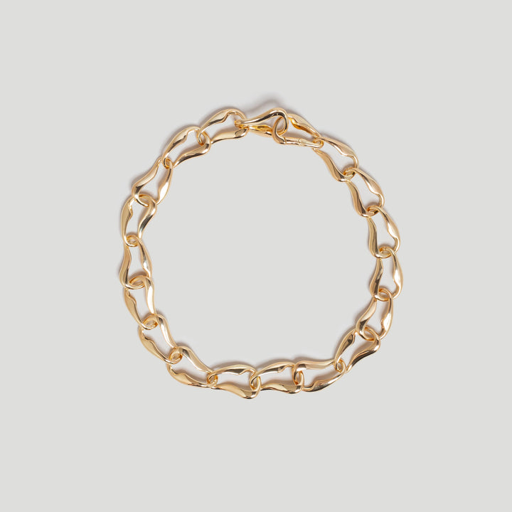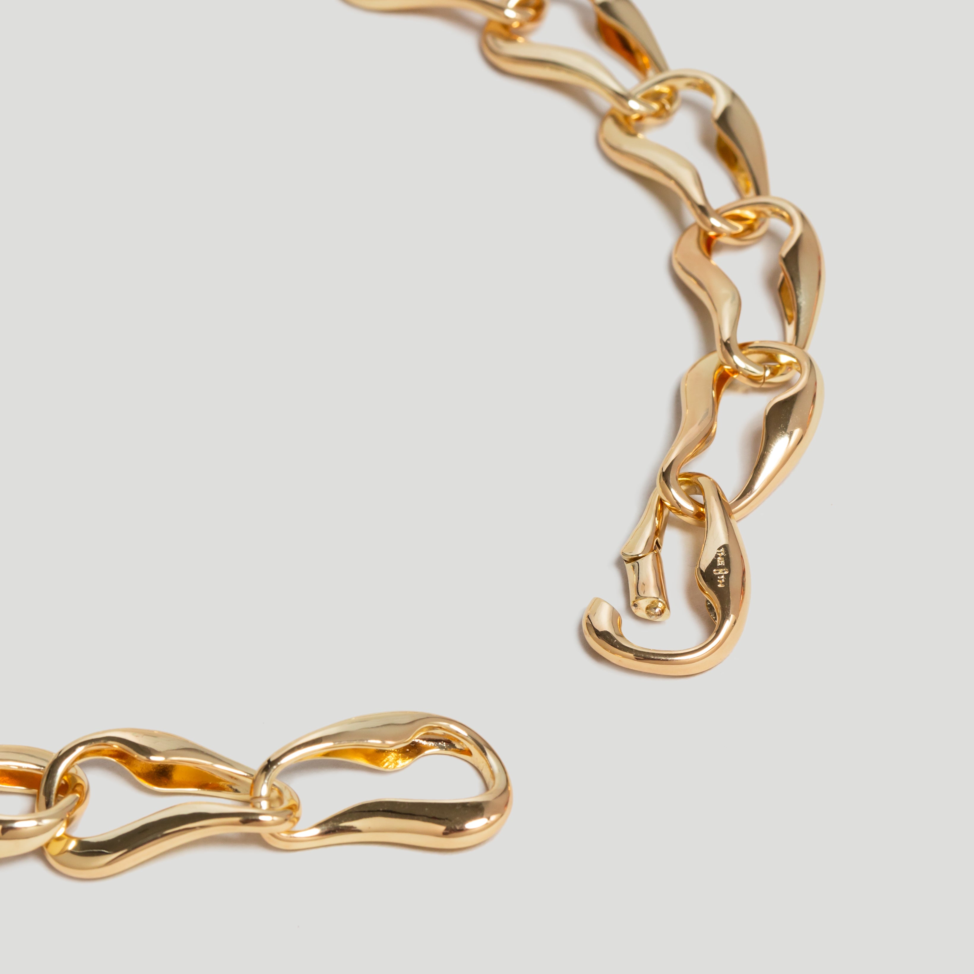 This gold chain necklace features bespoke links inspired by the fluid & continuous motion of waves.