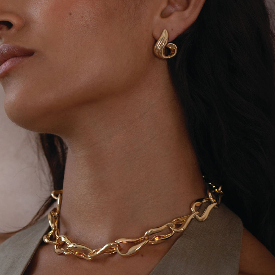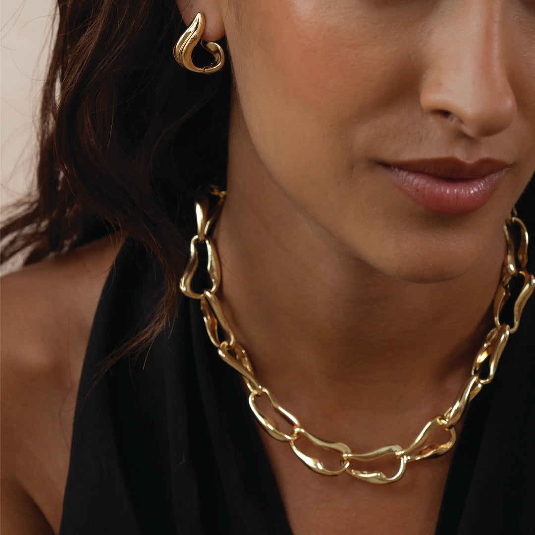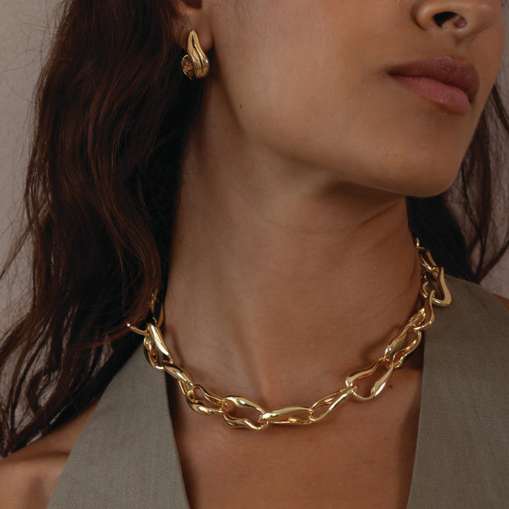 Wave Link Statement Gold Chain Necklace in 18k Gold Plate